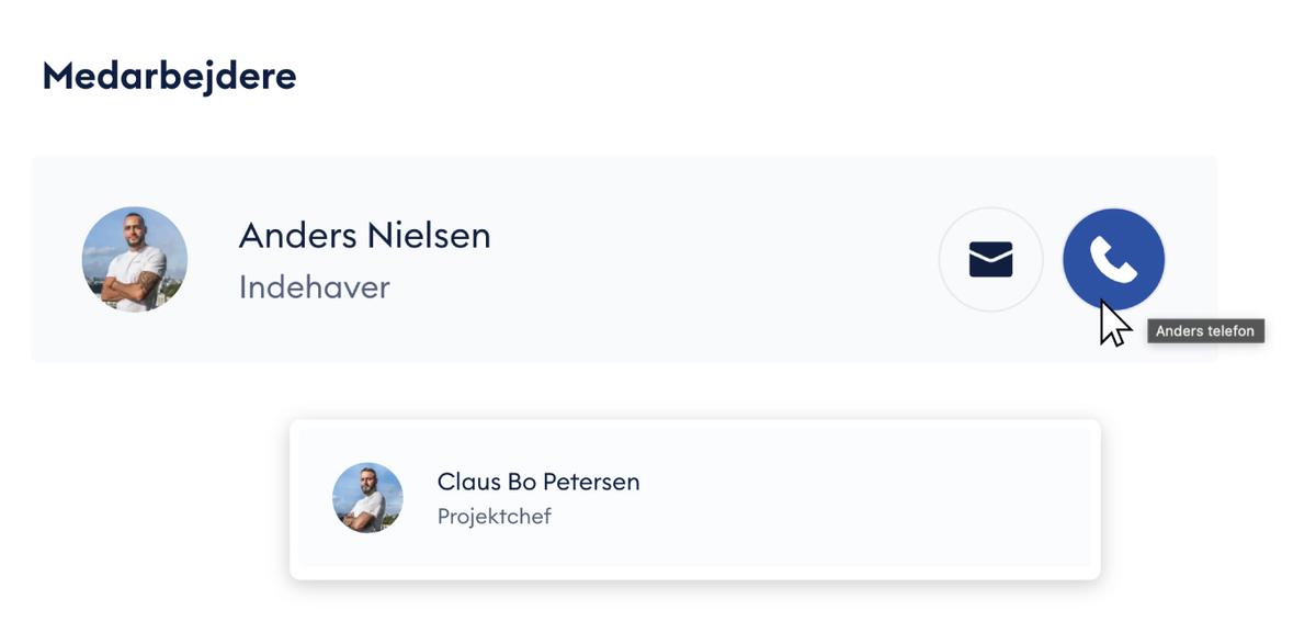 Kunder vil gerne vide, hvem de kommer til at arbejde sammen med på deres projekt. Ved at lade kunderne møde dit team kan de få et indtryk af virksomheden. Dette kan du gøre ved at inkludere billeder og beskrivelser af dine ansatte – for eksempel hvad deres titel er, samt et profilbillede. Det gør virksomheden mere personlig, og giver kunderne mulighed for at kontakte den person, der har været i dialog med dem, eller den, der har været på besøg.