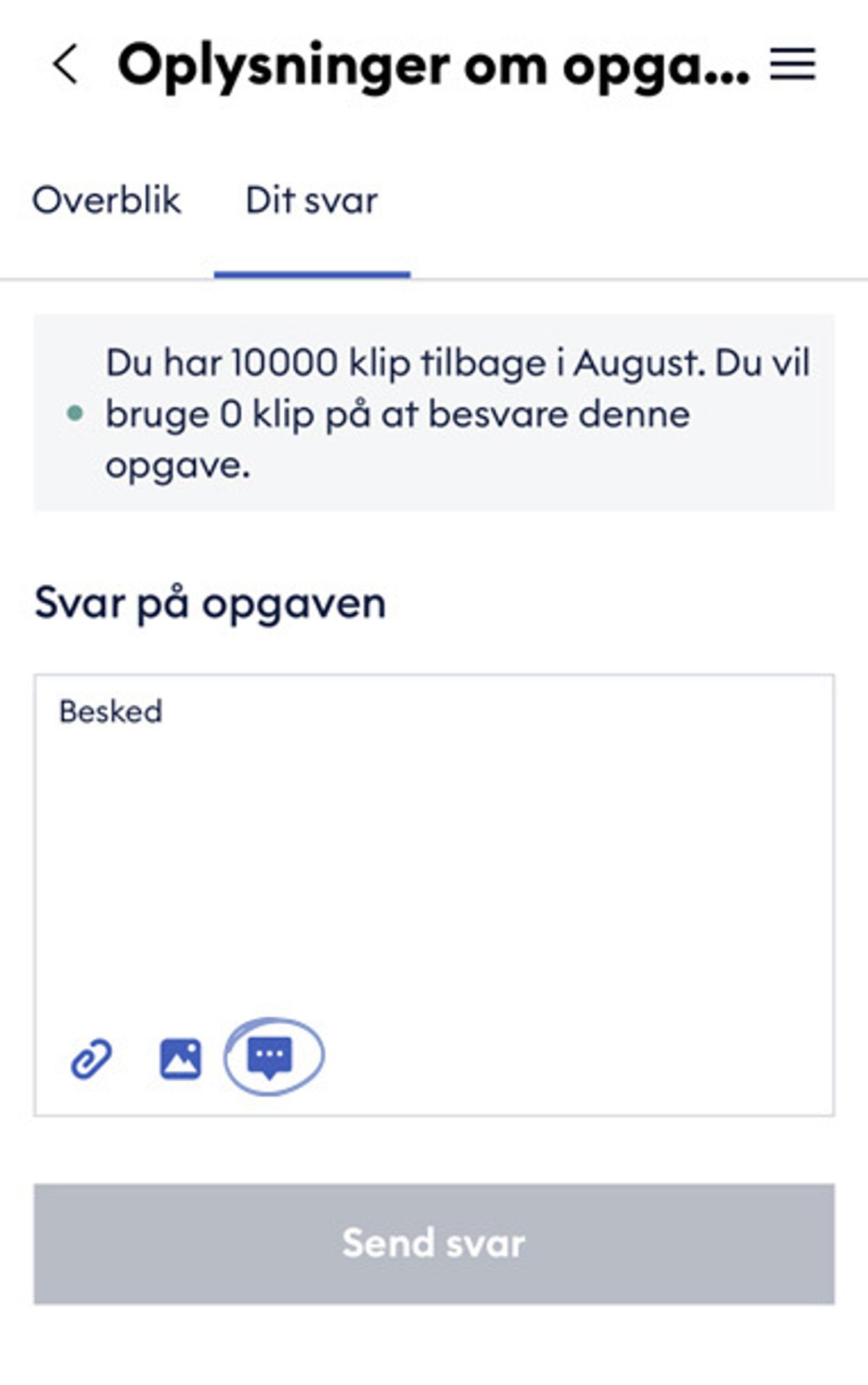 Når du har klikket på opgaven, vil du i hjørnet af tekstboksen se en lille firkant med tre prikker, som du klikker på.