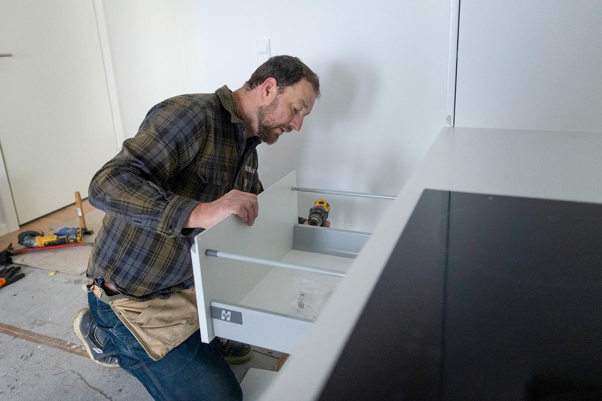 Køkkenmontering: Køkkenmontage af f.eks. et snedkerkøkken eller færdigkøkken, kan en tømrer hjælpe med. VVS- og elinstallationer skal hhv. en VVS’er og elektriker typisk stå for.